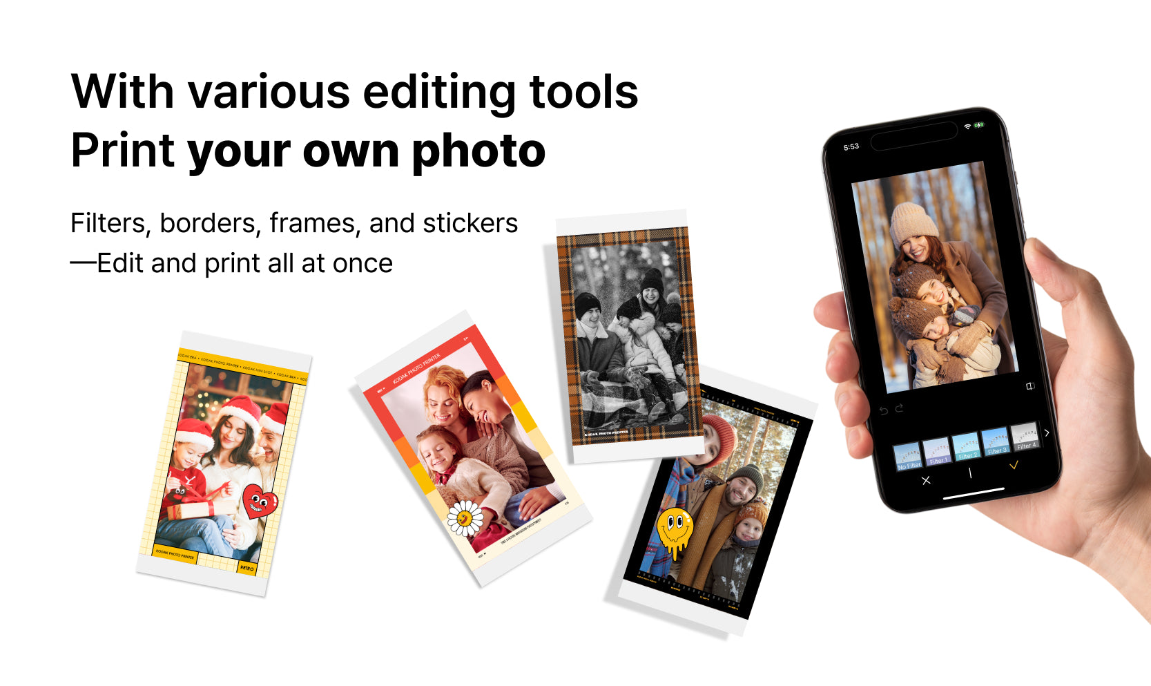 Kodak photo printers and instant cameras work with a mobile app. To print photos stored on your computer, simply transfer the files to your smartphone and print via the Kodak app.