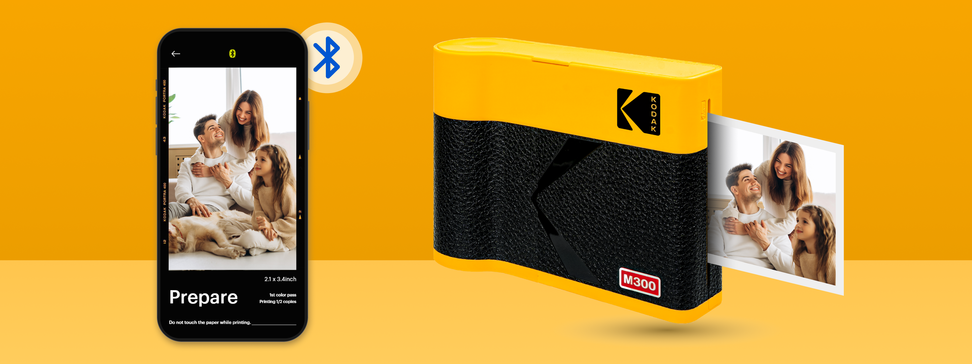 A compact photo printer for 3”x3” square photos—perfect for printing your favorite Instagram shots. Select your favorite pictures from the KODAK PHOTO PRINTER app and print them via Bluetooth.